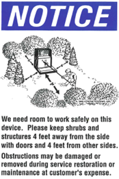 Please keep in mind that our Field Crew need to be able to access the lift station that provides sewer service to your property. Anything within a 4-foot radius of this station has potential of being damaged or altered. Please remove the foliage surrounding your lift station for the technicians to have better access to our equipment.