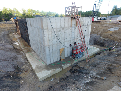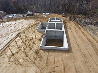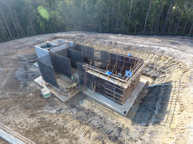 MBR Treatment Plant Walls being constructed prior to backfilling of soils around the 15 feet deep excavation