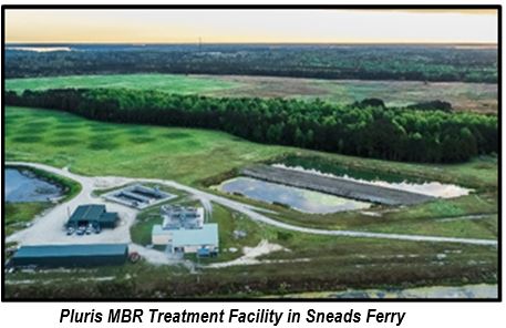Pluris’s Membrane Bio-reactor wastewater treatment plants treat wastewater to near drinking water quality, representing one of the highest level of protection to the environment and public health. Two of Pluris’s MBR facilities have been operational dating back to 2012, since the first one was brought online near the intercoastal water ways near North Topsail Beach, a barrier island. The second MBR facility is situated near Wilmington and is near the waterways separating the mainland from Topsail Beach, another barrier island. The third MBR facility is located in Onslow County near Jacksonville. This facility began operating in July 2020, just after Journal publication.