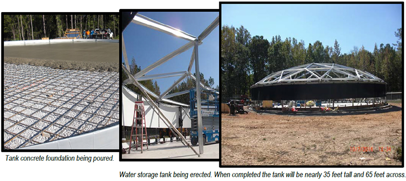As with the existing drinking water facility, the new state of the art facility draws water from a well with an initial capability of up to one million gallons per day. Onsite storage (above photos) will allow for water storage of nearly one million gallons. This feature will allow Pluris to better manage daily demands by customers.