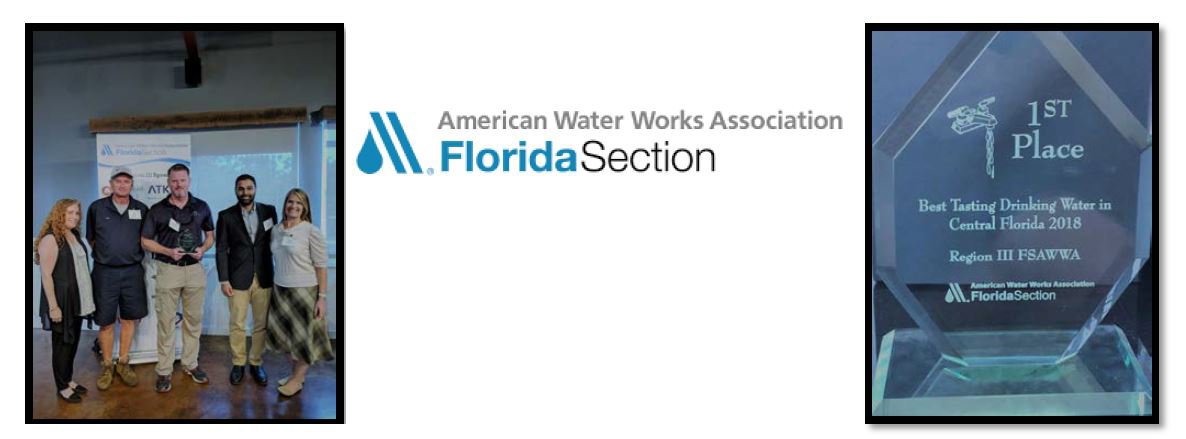 The Florida Section of the American Water Works Association (“FSAWWA”), Region III which includes Brevard, Lake, Orange, Osceola, Seminole, and Volusia Counties held its annual “Best Tasting Drinking Water Contest” on Wednesday, March 27, 2018. The contest is open to all private and government owned Central Florida Region III Utilities. All entries are judged by an impartial panel of judges and this year’s panel included Donna Metherall, Casey Cumiskey with FSAWWA and media representative, Jorge Estevez with WFTV-TV Channel 9. The identities of the samples were withheld during the judging.