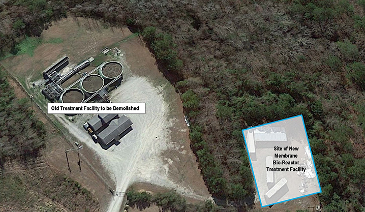 The aerial photograph below shows the location of the new MBR water reclamation facility relative to the old plant.