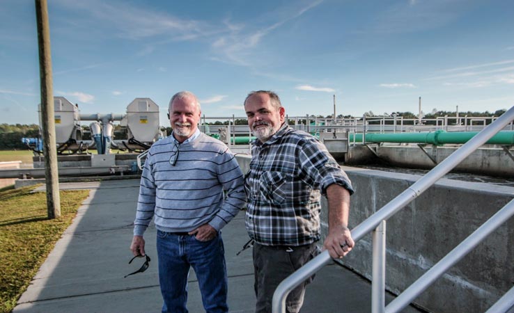 Joe Kuhns (left) and Randy Hoffer have nearly 60 years of combined experience in the water and wastewater industry. The two veterans recently met up at one of Pluris’s membrane Bio-Reactor (MBR) treatment facilities. They got together to discuss treatment and customer service improvements in meter reading and billing technologies Pluris is implementing in the utilities. As regional managers, Joe oversees all Florida operations and Randy oversees all operations in North Carolina. Both veterans hold numerous advanced water and wastewater licenses in their respective states and each has a passion for customer service and innovation.