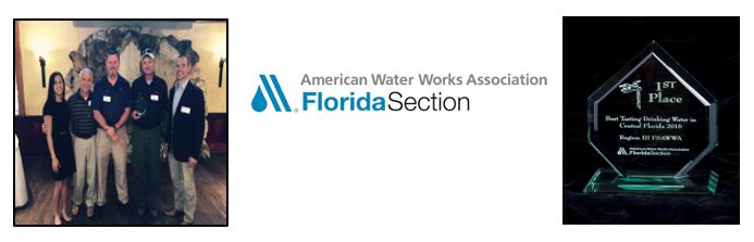Wedgefield’s water as the best tasting drinking water in Central Florida with awarding first place to our utility.